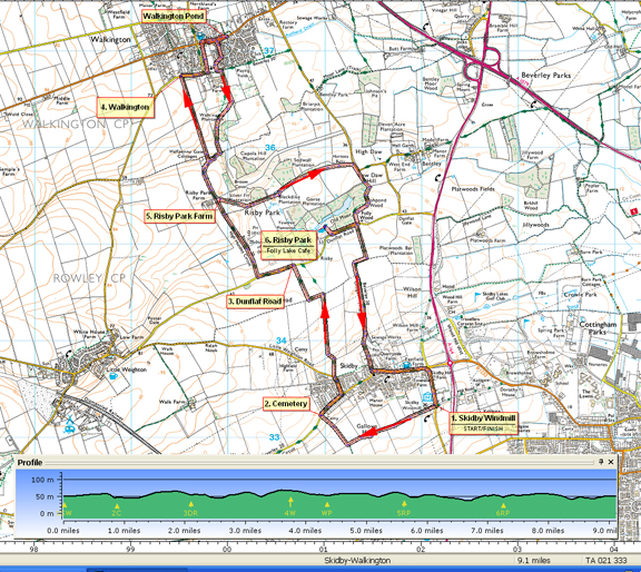 - a linear route either way between Skidby and Walkington, using the 61 or 180 bus one way